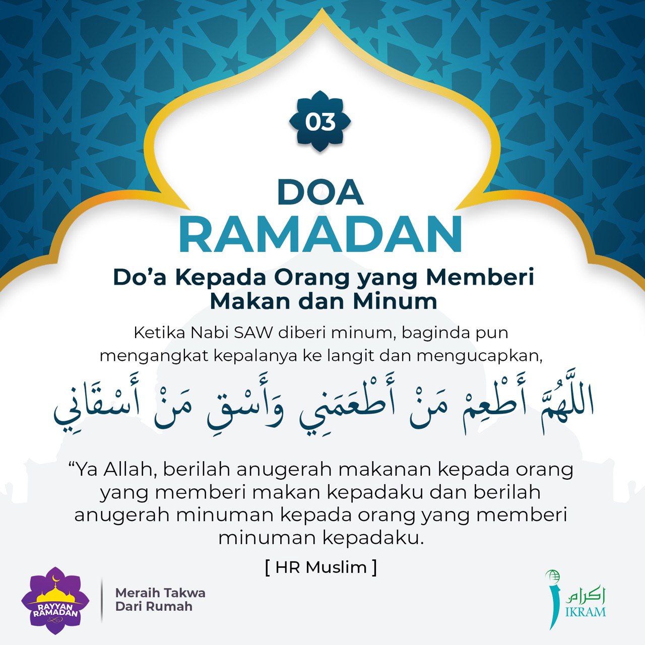 Ikram Malaysia On Twitter Doa Kepada Orang Yang Memberi Makan Dan Minum Hargai Pemberian Saudara Kita Doakan Agar Allah Swt Mengganjarinya Dengan Sesuatu Yang Lebih Baik Rayyanramadan Meraihtakwadarirumah Ikramrairamadan Https T Co